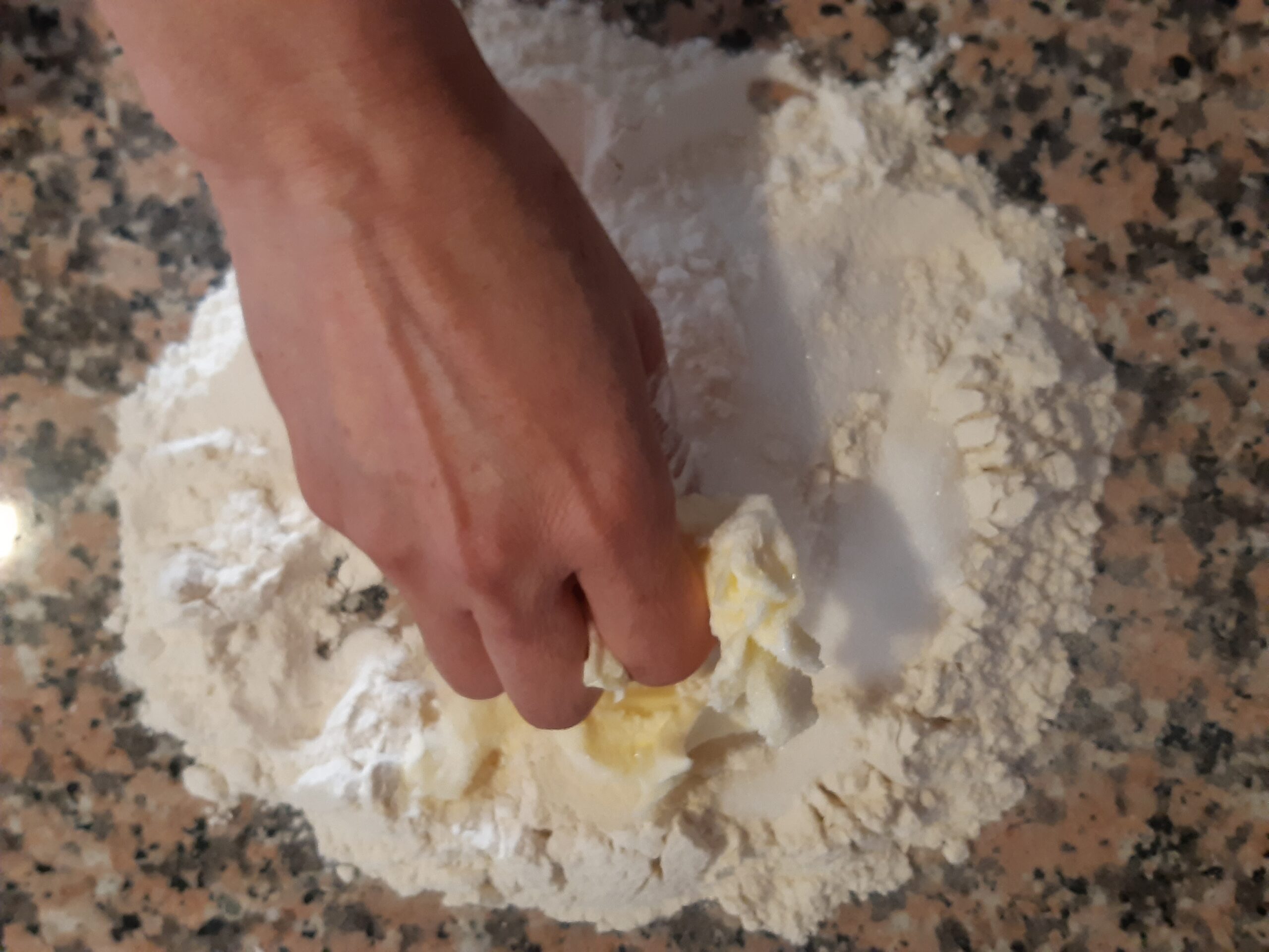 Mezcla estos ingredientes con los dedos hasta conseguir una consistencia arenosa.
