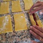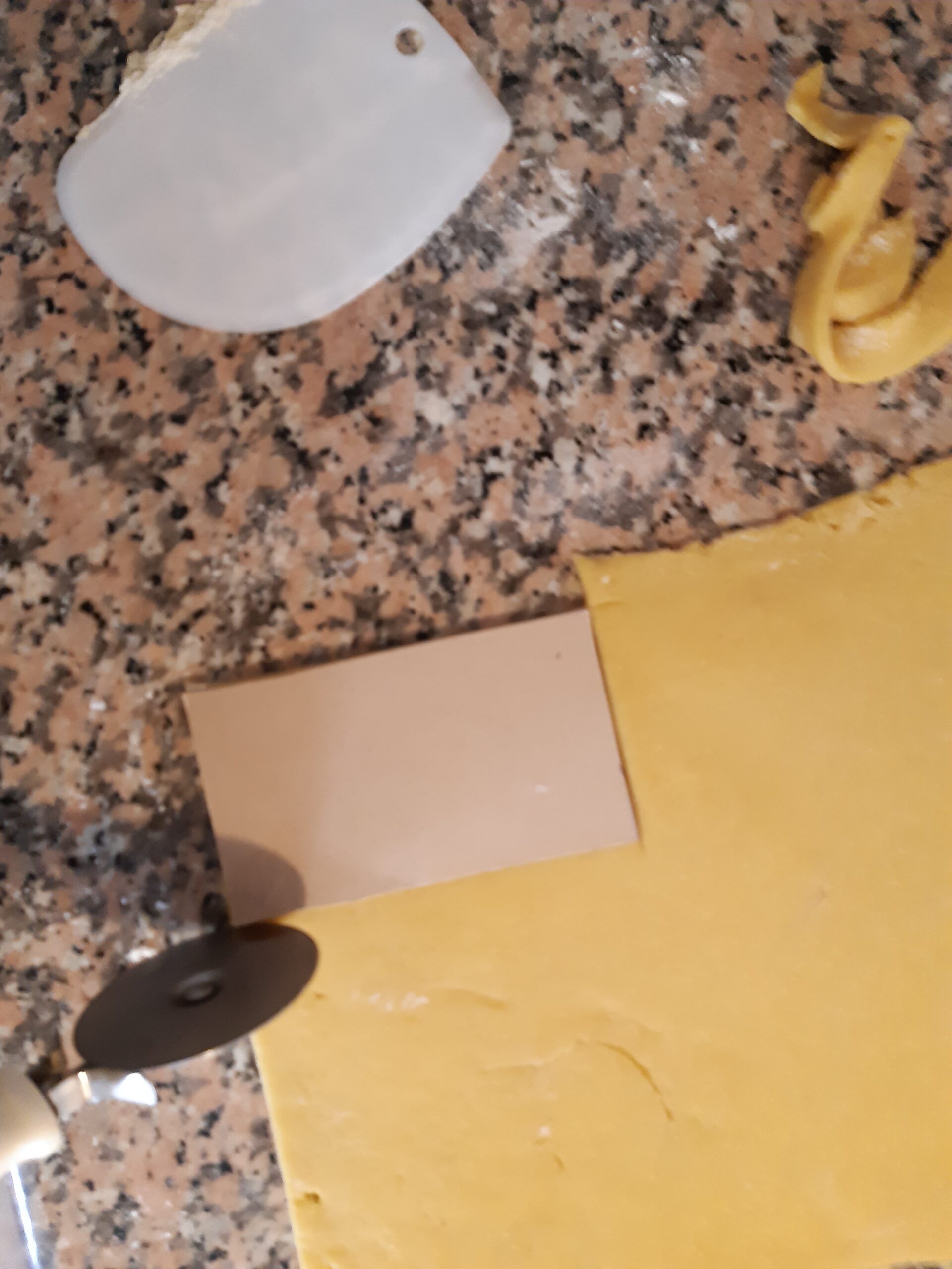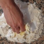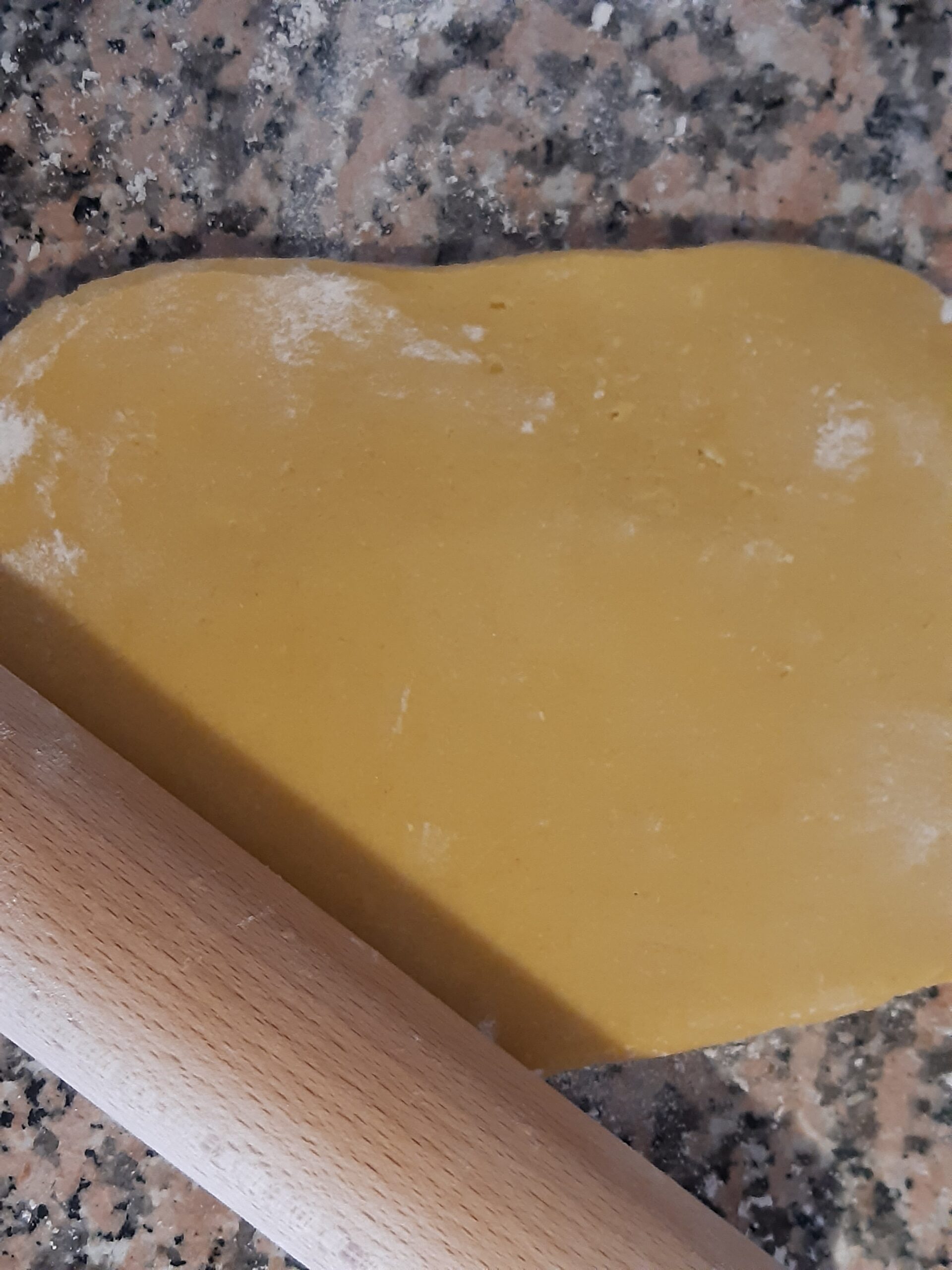 Una vez que la masa ha reposado extiéndela con un rodillo en una base ligeramente enharinada (espesor de un poco menos de ½ centímetro).