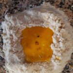 Forma nuovamente una fuente y agrega el huevo, la ralladura de limón y la vainilla.