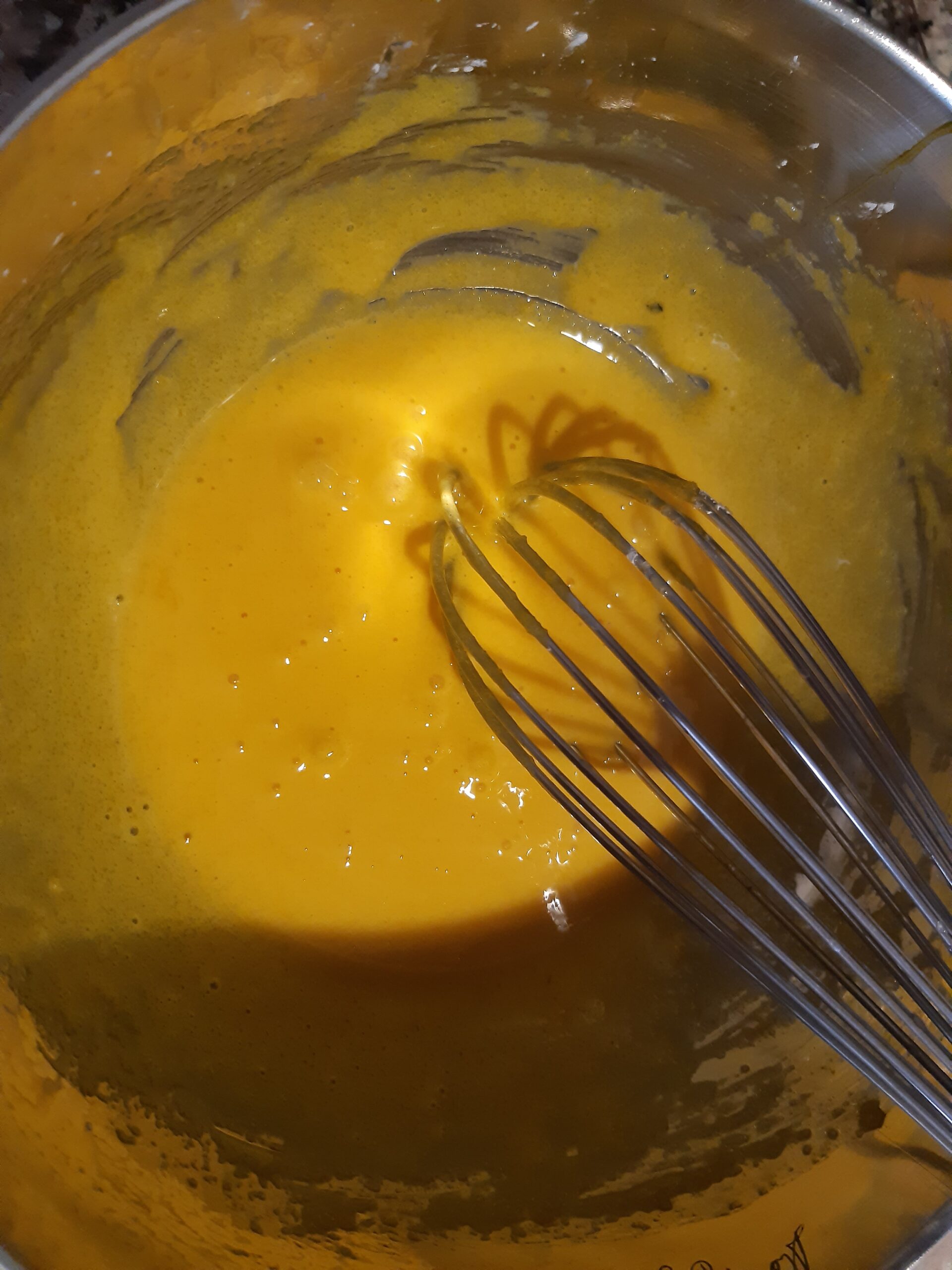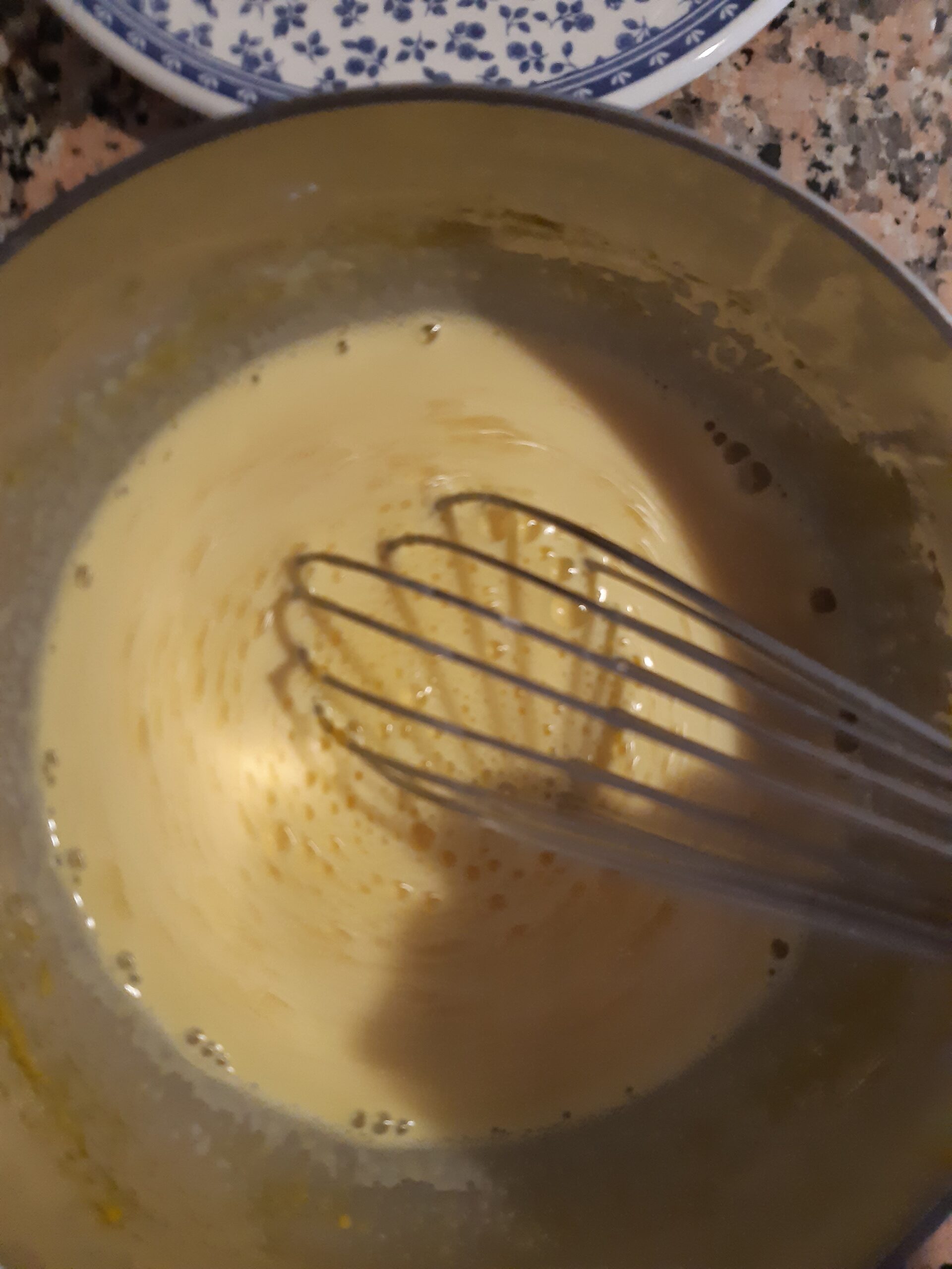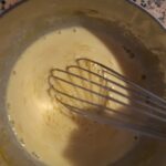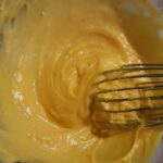 Mientras, en un recipiente aparte bate con el batidor a mano la yema con el azúcar, agrega la maizena e incorpora bien todo. Cuando la leche hierva agrégala pasando por un colador a la mezcla precedente, incorpora bien y vuelve a poner a fuego lento sin dejar de mover hasta adensar.