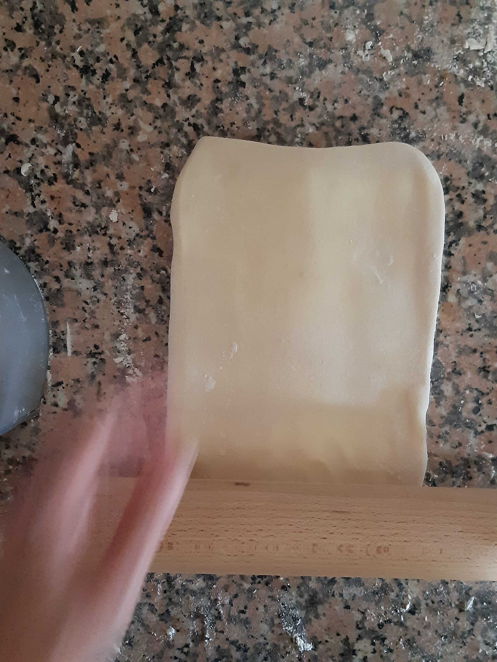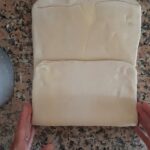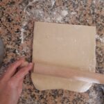 Después del último doblez estira la pasta nuevamente, a este punto ya está lista para ser usada. (es mejor sí la dejas reposar para usarla el día siguiente)