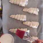 - Un poco de leche para barnizar la superficie del cuernito (o también huevo)